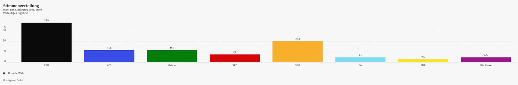Vorläufiges Ergbnis der Stadtratswahl 2026 in Stein