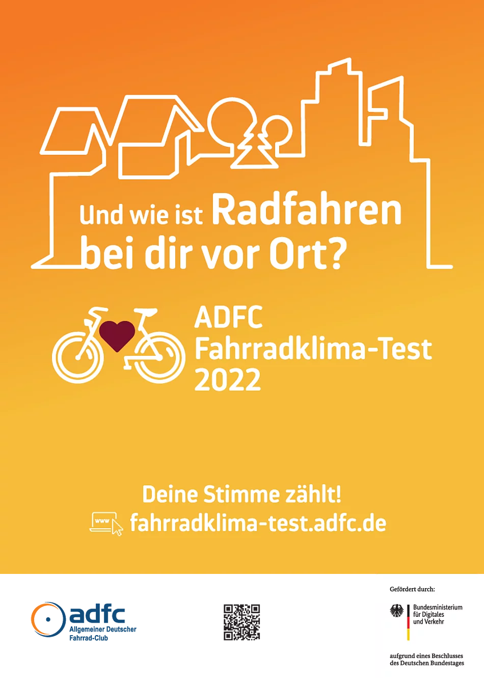 Der ADFC-Fahrradklima-Test ist der Zufriedenheits-Index der Radfahrenden in Deutschland. Vom 1. September bis zum 30. November 2022 können Radfahrende wieder das Fahrradklima in ihren Städten und Gemeinden in Deutschland bewerten. Schwarmwissen für Verkehrsplaner:innen und politisch Verantwortliche: Die lebensnahen Rückmeldungen, nützlichen Hinweise und Bewertungen der Bürgerinnen und Bürger des ADFC-Fahrradklima-Tests lassen sich gezielt für Verbesserungen im Radverkehr nutzen. Die Ergebnisse helfen auch, die Erfolge der Radverkehrsförderung vor Ort zu bewerten.Der ADFC-Fahrradklima-Test ist eine der größten Befragungen zum Radfahrklima weltweit und findet 2022 zum zehnten Mal statt. Das Bundesministerium für Digitales und Verkehr fördert den ADFC-Fahrradklima-Test aus Mitteln zur Umsetzung des Nationalen Radverkehrsplans.