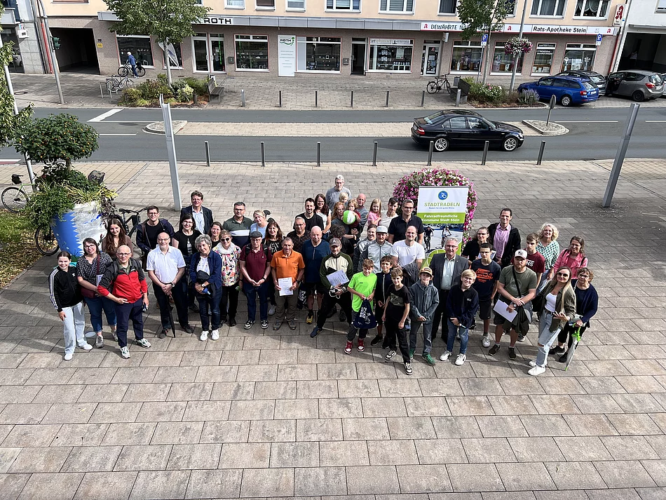Am 16. Juli 2025 versammelten sich zahlreiche Radbegeisterte vor dem Steiner Rathaus, um gemeinsam mit Ersten Bürgermeister Kurt Krömer die Preisverleihung zum diesjährigen STADTRADELN zu feiern.