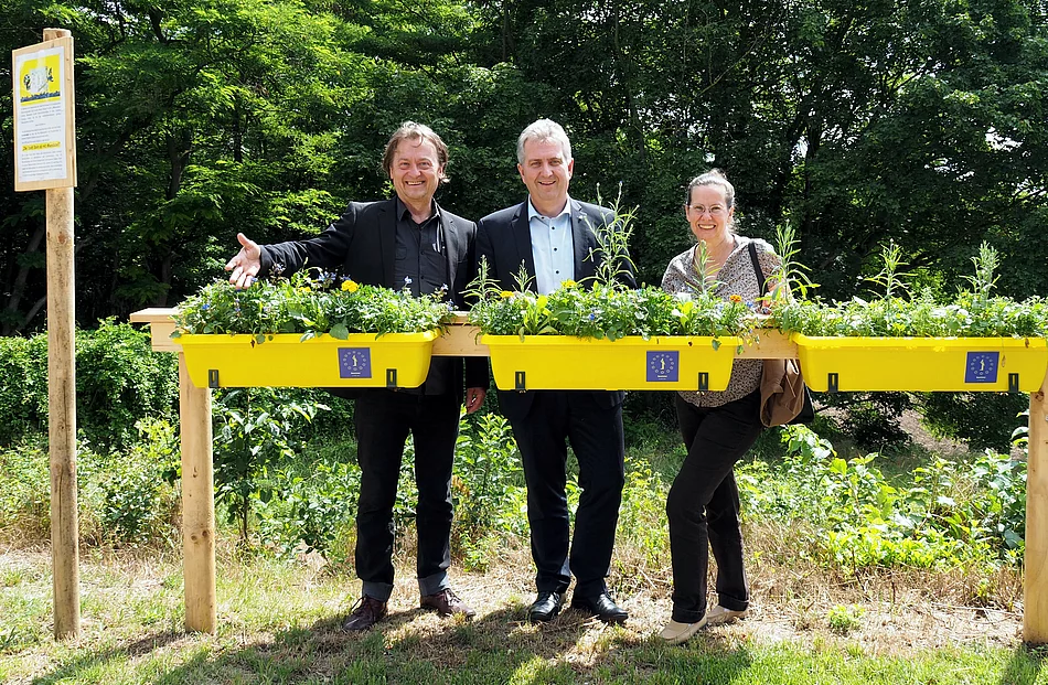Um die besonderen Blumenkästen unter die Steiner Bürger zu bringen, werden die Beedabei-Kästen in einigen Wochen für einen symbolischen Betrag verkauft. Der Erlös geht an die Steiner Bürgerstiftung, die mit dem Geld soziale Zwecke in der Stadt Stein unterstützt. "Wir wollen damit erreichen, dass die Kunstaktion zum Teil in ein soziales Projekt umgewandelt wird. Gleichzeitig werden die Blumenkästen weiterhin verteilt in der Stadt Stein leuchten und die Insektenwelt bereichern", so Krömer. Das Künstlerpaar ist sich einig: "Das ist eine schöne Idee, die ganz in unserem Sinne ist." Mehr Informationen zum Verkauf der Blumenkästen erfahren Sie in Kürze.